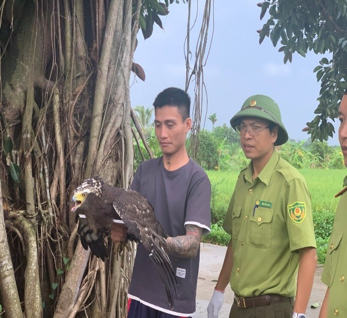 Vào ngày 12/10/2025, trong lúc đi đường, ông Nguyễn Văn Thương, trú tại thôn 11, xã Vĩnh Thuận, thành phố Hải Phòng, đã vô tình nhặt được một con Diều hoa miến điện. Nhận thấy đây là loài chim đặc biệt, ông Thương đã tìm hiểu thông tin và biết được Diều hoa miến điện là động vật hoang dã nguy cấp, quý hiếm, không được phép nuôi nhốt. Với trách nhiệm bảo vệ động vật hoang dã, gia đình ông đã nhanh chóng liên hệ với cơ quan chức năng và bày tỏ nguyện vọng chuyển giao cá thể chim này để được chăm sóc và tái thả về tự nhiên. Hành động này là một tấm gương sáng về ý thức bảo tồn trong cộng đồng.